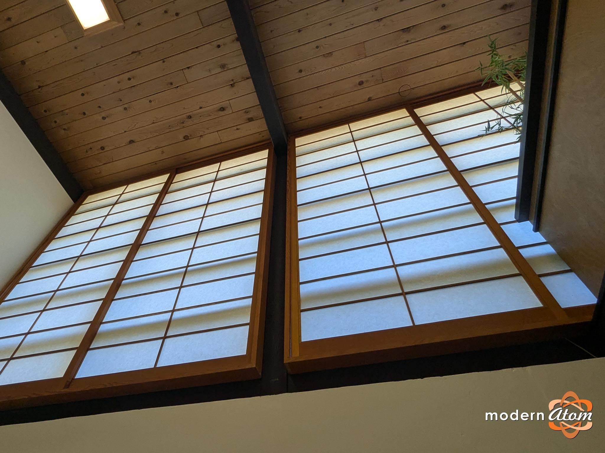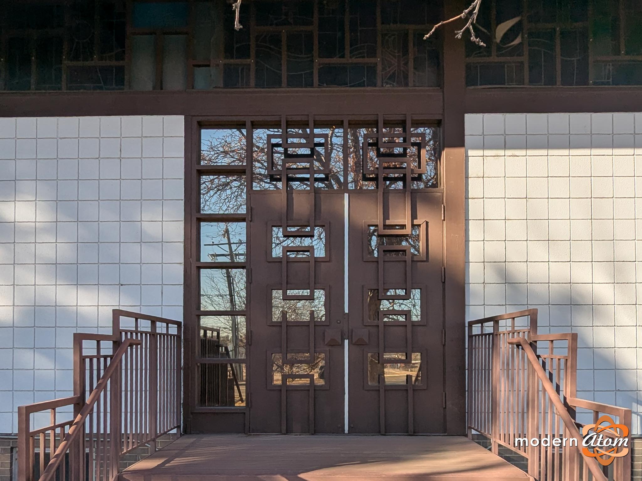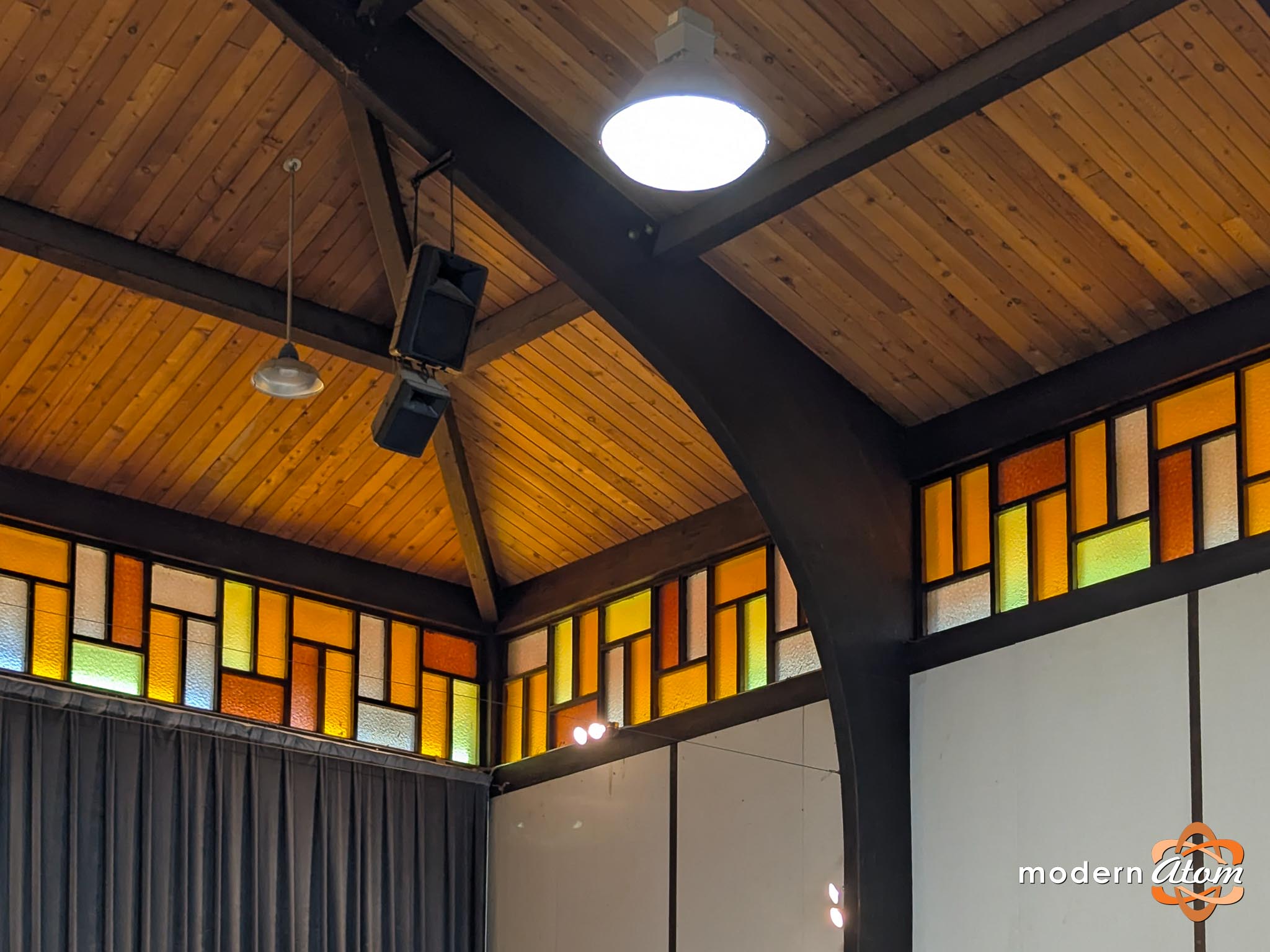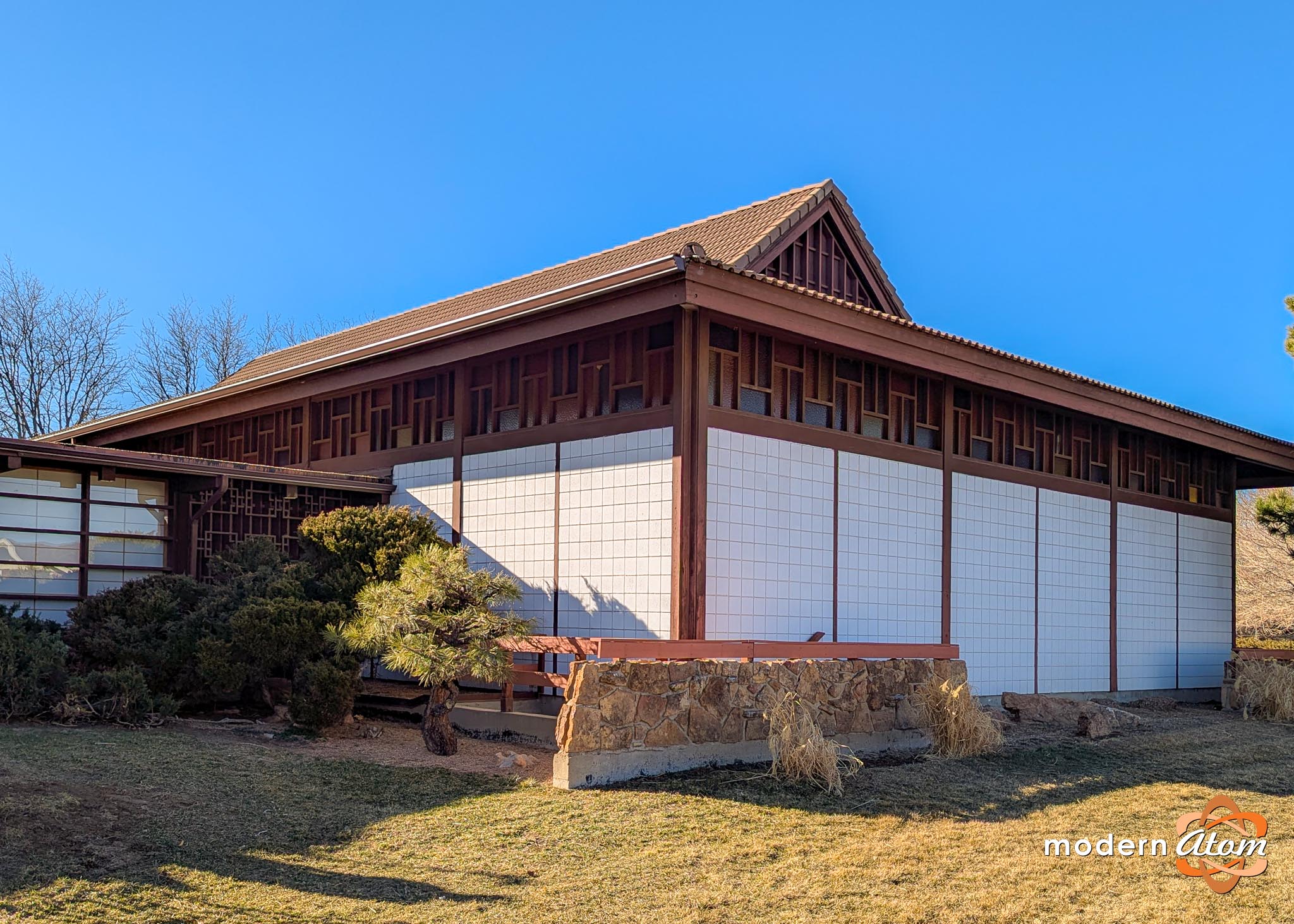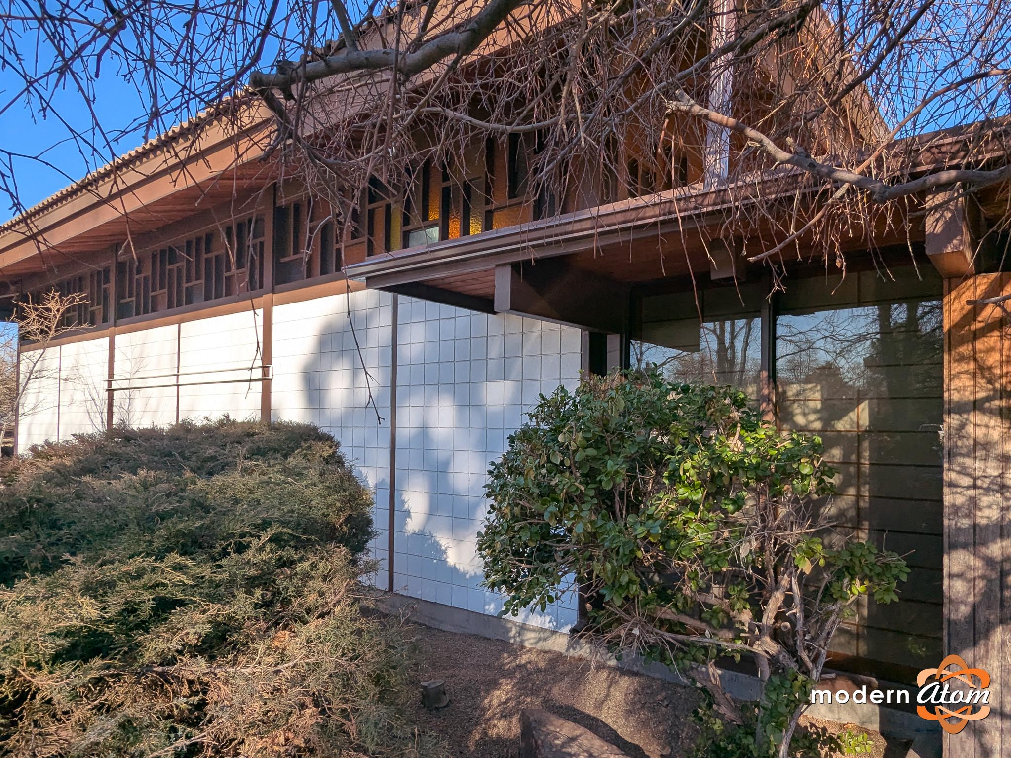 Comprised of two connected pavilions that are elegantly detailed, the building is human scaled and a great study of the ideas of compression and release that Frank Lloyd Wright often used in his work, with a variety of large and intimate spaces. Rectilinear geometry, stained glass, tongue-and-groove ceilings, interior buttresses, and shoji panels make up much of the interior architecture and ornamentation.