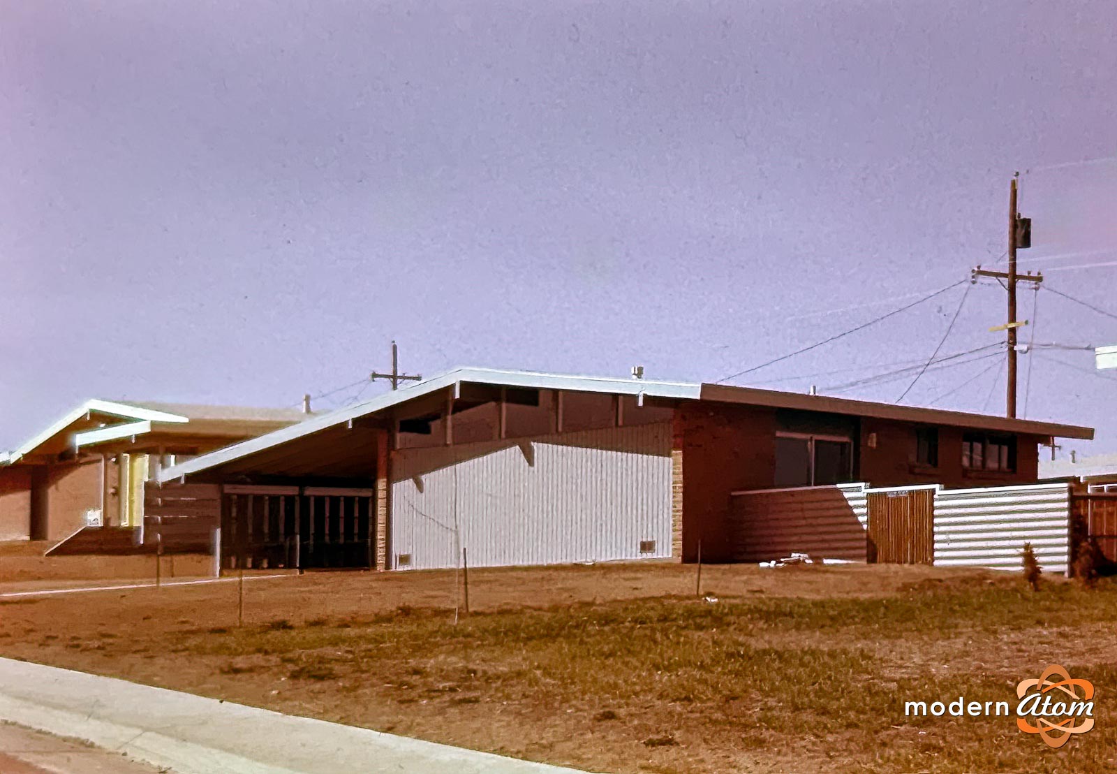 The 2-bedroom model could be arranged in multiple ways in relation to the street, each with different rooflines and carport options. While most examples have a clerestory window under the gable facing the street with no front windows to maximize privacy, with a protected entrance deep inside the carport - there were other options - including a front door under the gable that faced the street, and a version where the broad side of the home faced the street with a front door - using what would have typically been a side door to the backyard as the main entrance. One kit of parts . . . many options.