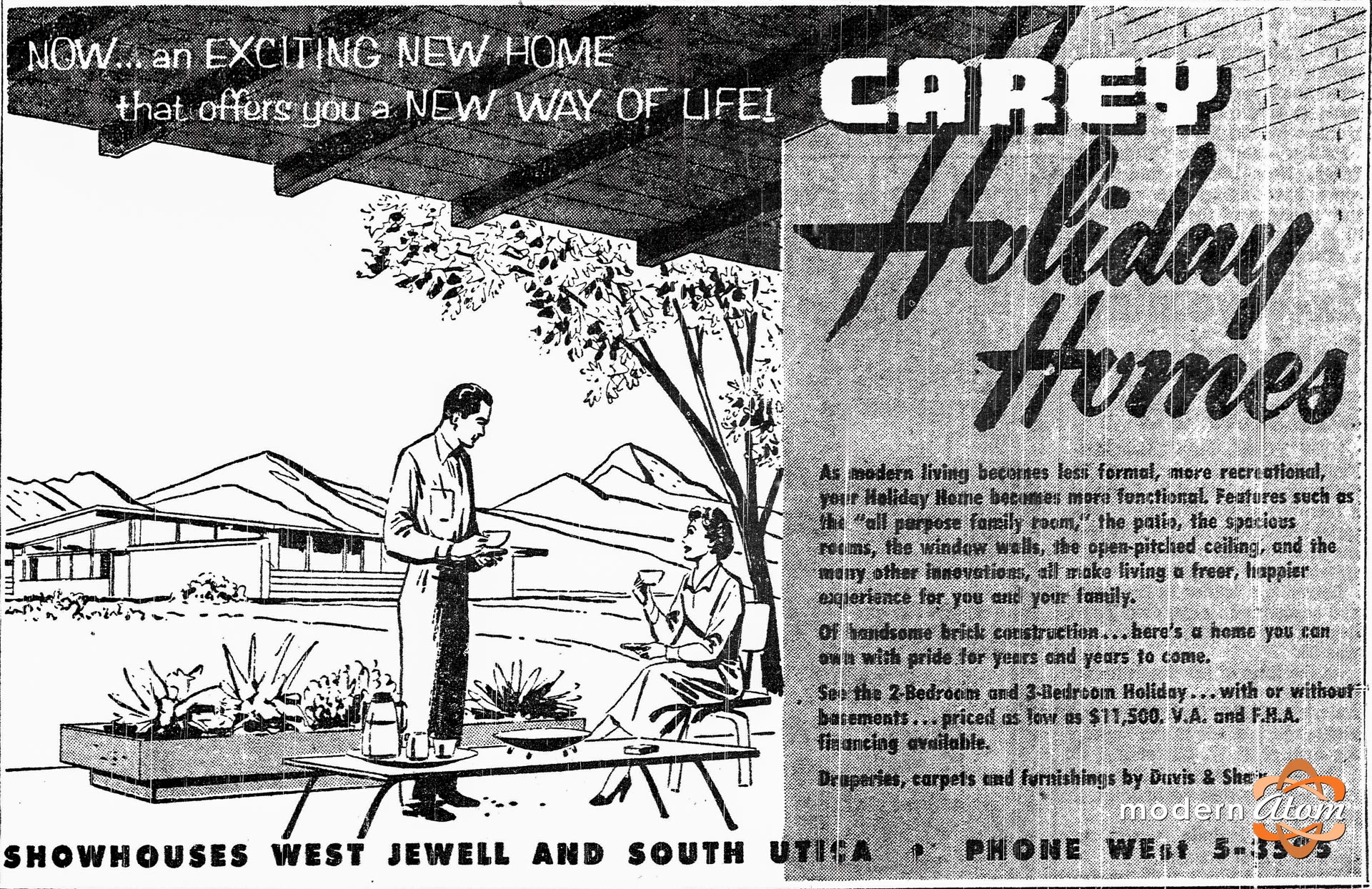 This tagline from one of the big, beautiful newspaper ads for the Carey “Holiday Homes” in Denver’s Harvey Park from the summer of 1954 sums up beautifully what merchant home builders were trying to achieve with modern architecture (what we now call mid-century modern design) in the 1950s. Carey Construction Co. was not just selling you a house; they were not just selling you four walls and a roof—they were selling you a new way of living. Informal, functional, easier . . . all to make living “a freeing, happier experience for you . . .” Part of why this is so great is for the same reason mid-century modern real estate has had such staying power in recent years - the design of these homes has been re-discovered as being about much more than a trendy style or fashion statement. It is architecture designed around enhancing the human experience, and buyers of mid-century modern homes can see that in the Holiday Homes and others in Harvey Park and beyond.
