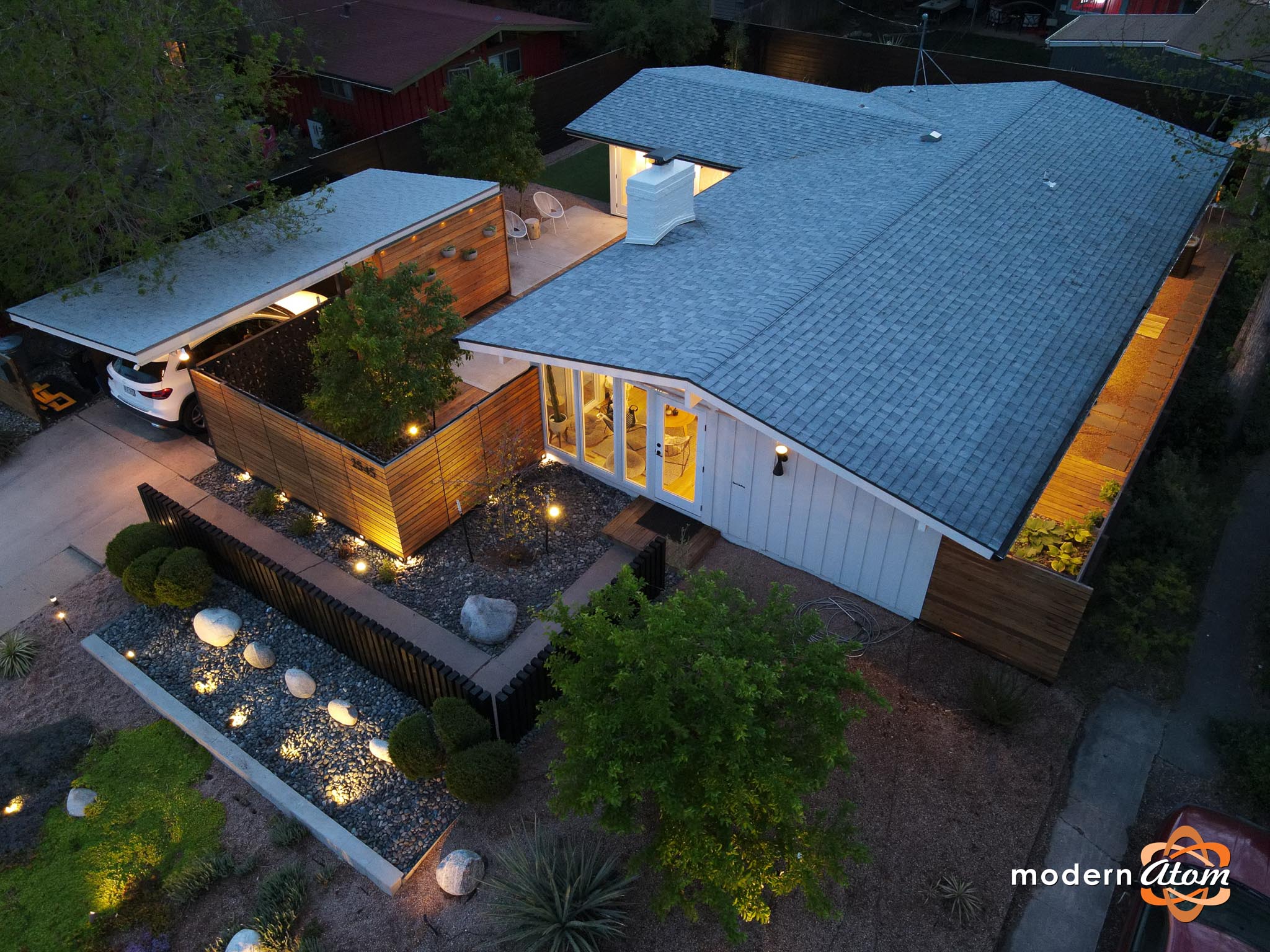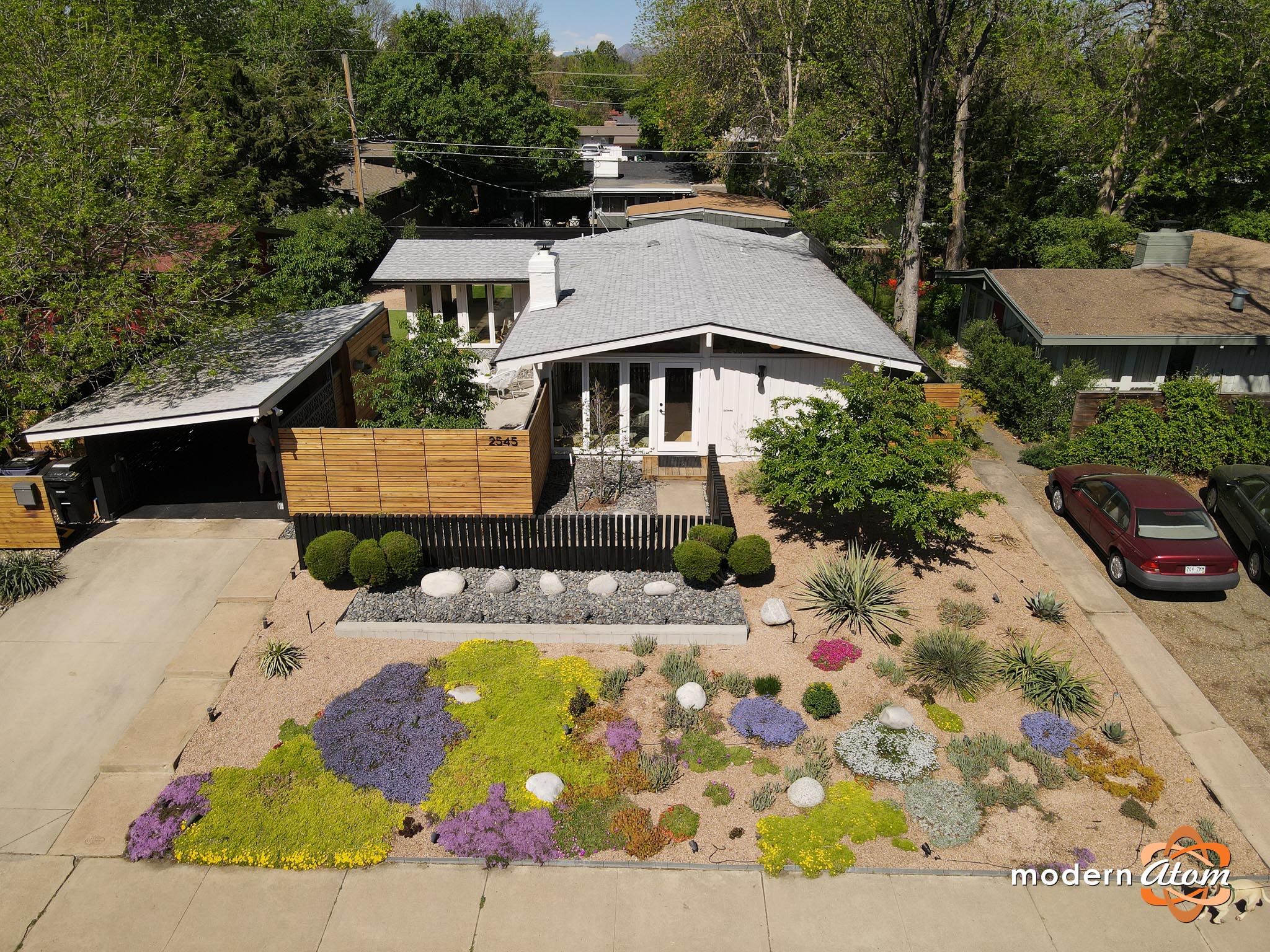 A bold xeric front garden adds low-maintenance style. No watering. No guilt. Extras: tankless hot water, bio-ethanol fireplace, EV charging, Lutron dimmers, Pella windows, whole-house water filtration. Mid-century style. Modern ease. Quietly brilliant.